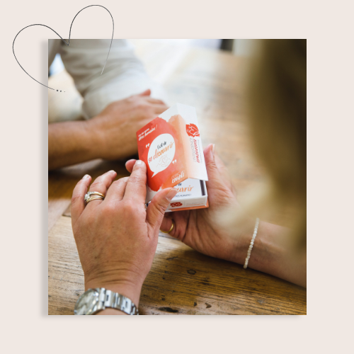 Des cartes belles et simples dans une boite luxe, à offrir et à s’offrir, pour jouer en amoureux, entre amis, en famille... Et aller à la rencontre de l'autre avec amour et tendresse.