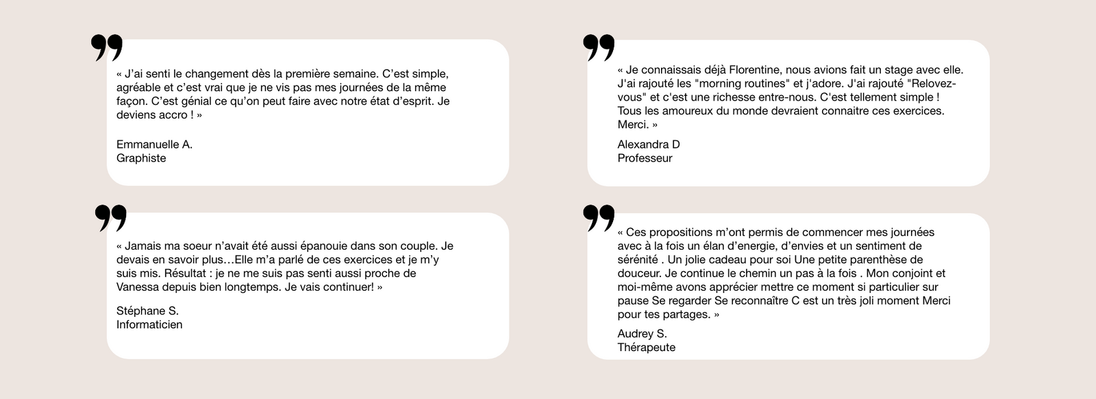 La promesse c'est qu'après quelques jours tu ne voudras plus te passer de ce moment du matin. Et vous aurez le cadeau en observant les résultats sur votre relation !